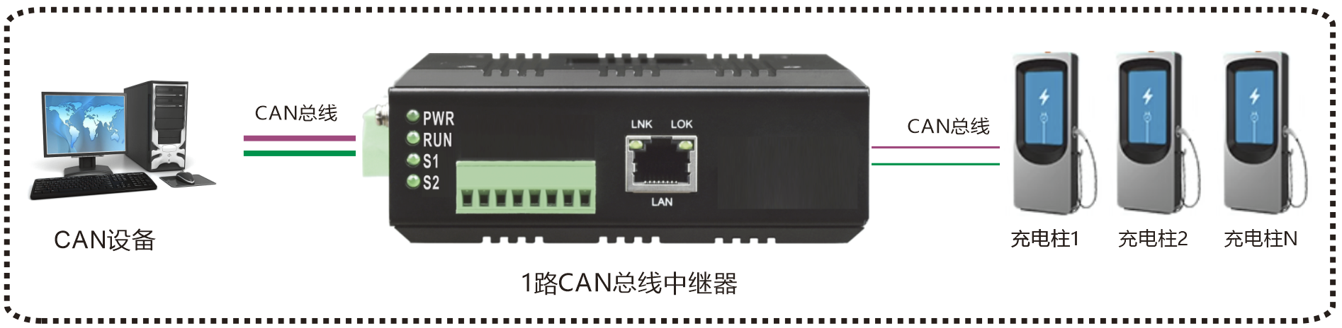 ◆ CAN總線隔離器,能實(shí)現(xiàn)CAN網(wǎng)絡(luò)的中繼功能,能將不同速率的CAN網(wǎng)絡(luò)之間的數(shù)據(jù)存儲轉(zhuǎn)發(fā)。主要應(yīng)用如下: